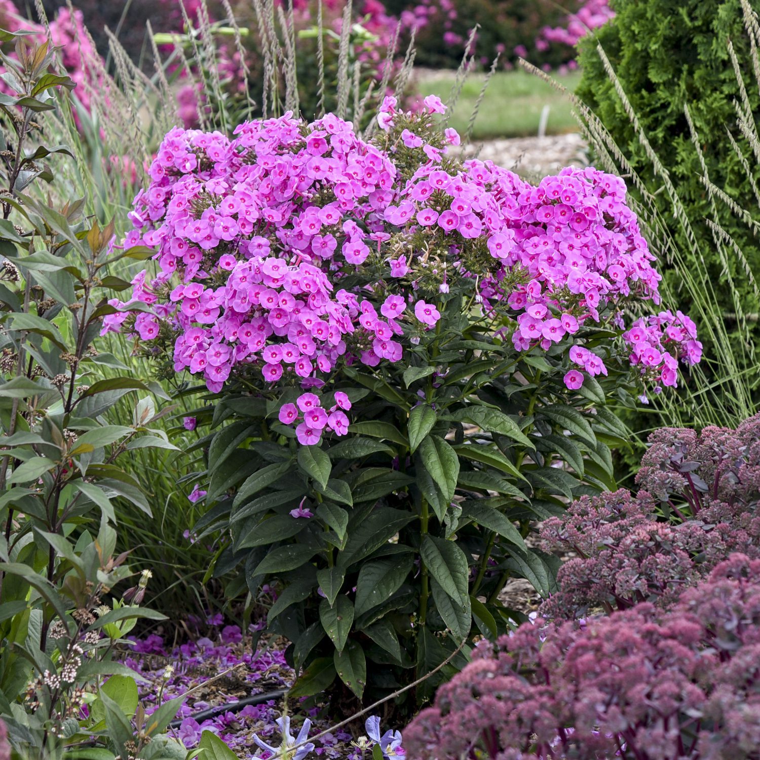Star-shaped blooms in red, pink, purple, and white attract pollinators and add fragrance. Groundcover, border, and tall varieties are all available. Hardy in zones 3–9.