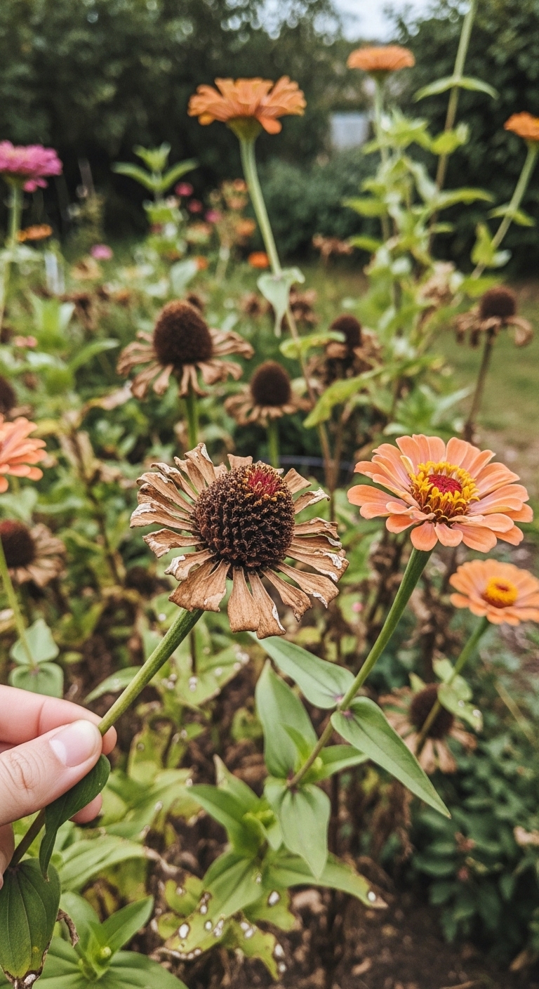 Zinnias produce seeds readily, but make sure they’re not hybrids if you want similar results next year. Let seed heads darken to a rich brown before gently rubbing them to release seeds. Even cross-pollinated zinnias can produce some fun surprises.