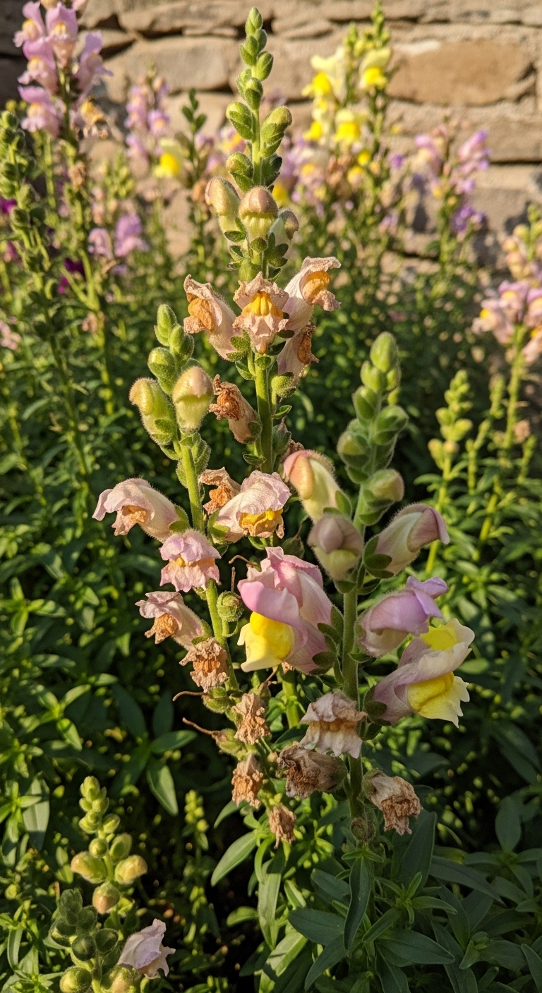 Snapdragon seed pods are charming—they resemble tiny skulls! Once they dry out and turn brown, roll them or shake them gently to release small black seeds. Start these indoors 8–10 weeks before your last frost for a head start.