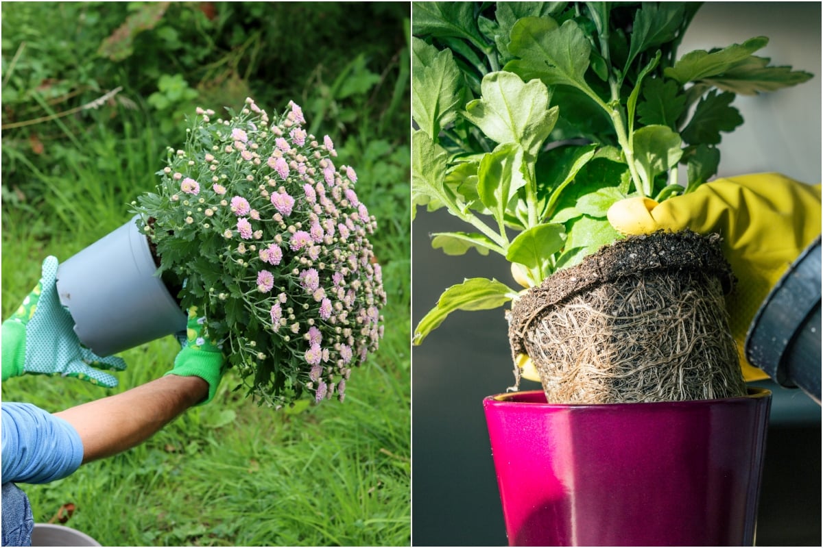 Garden center mums are often rootbound. If left as-is, they struggle to grow properly.