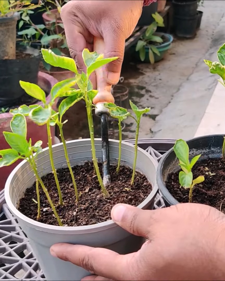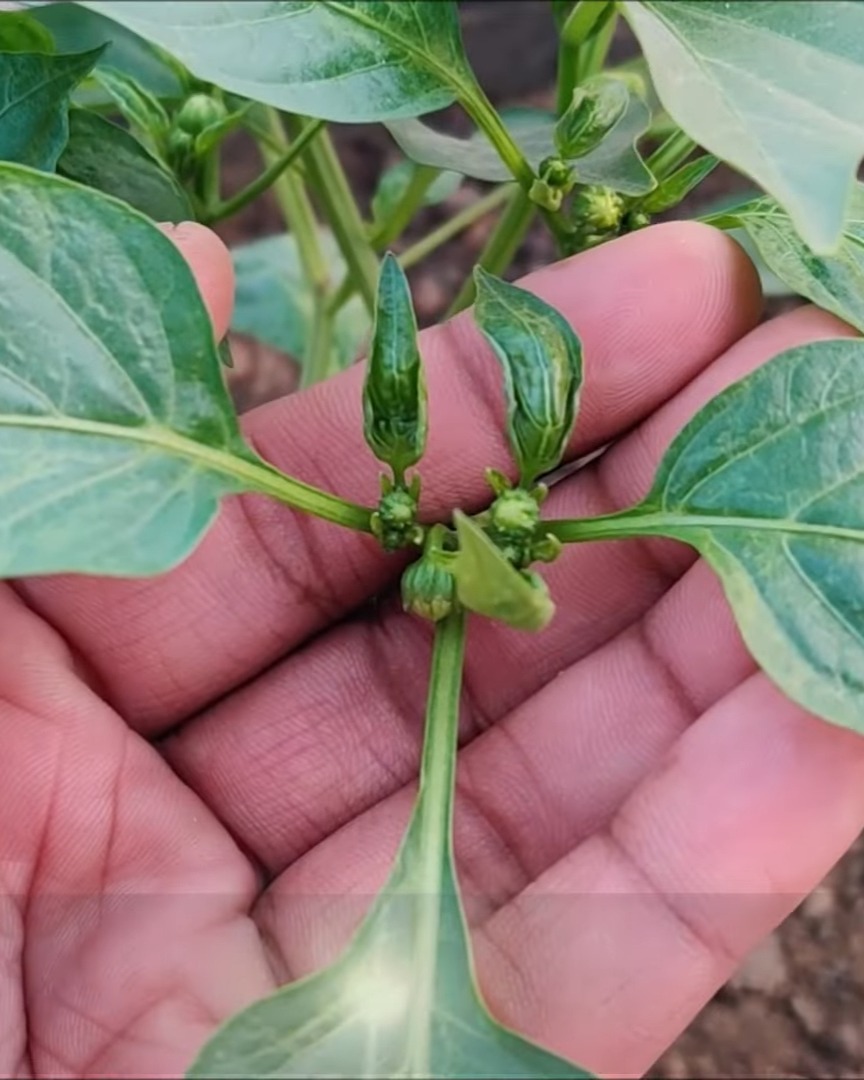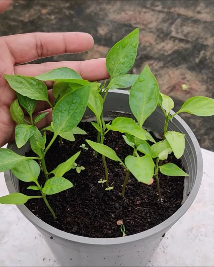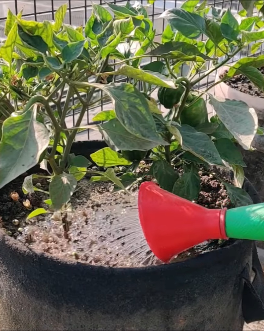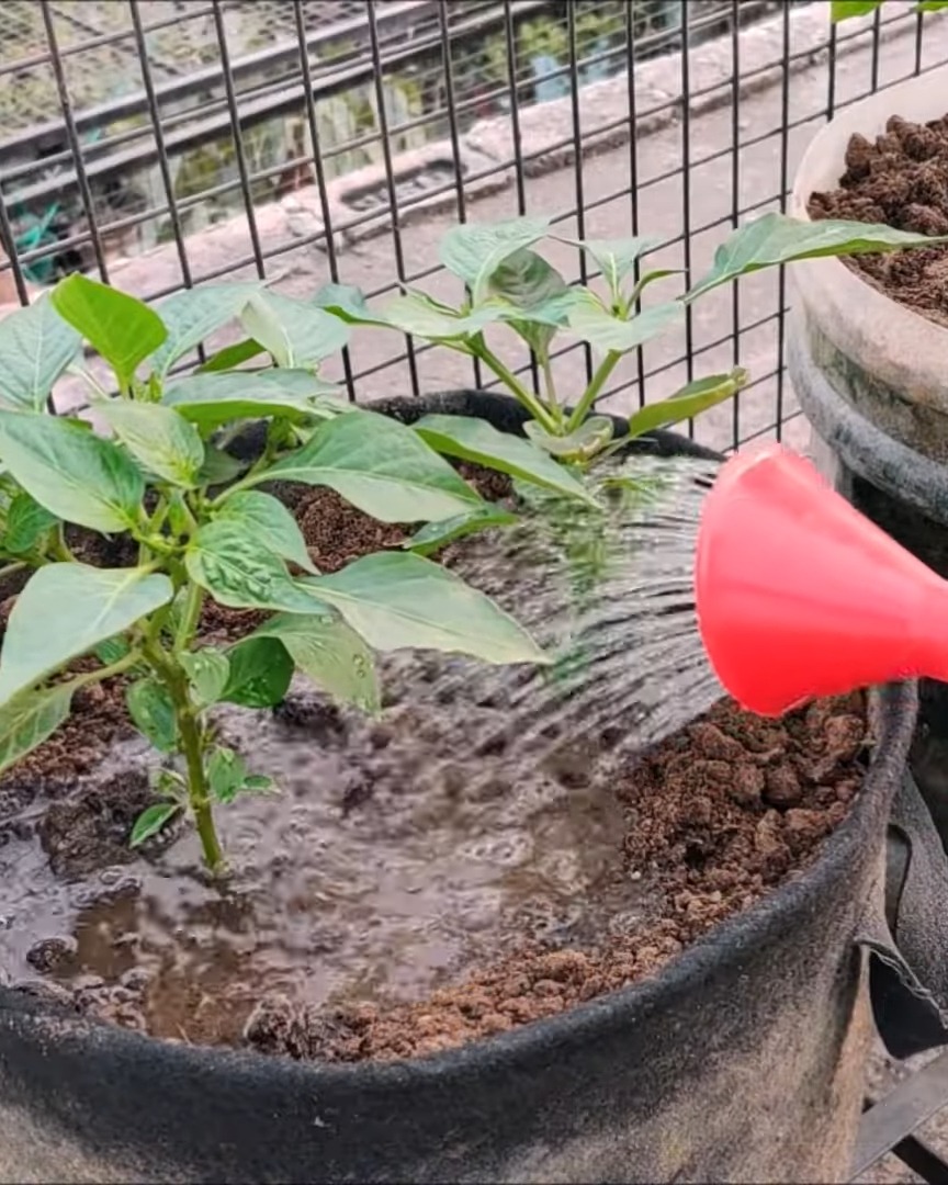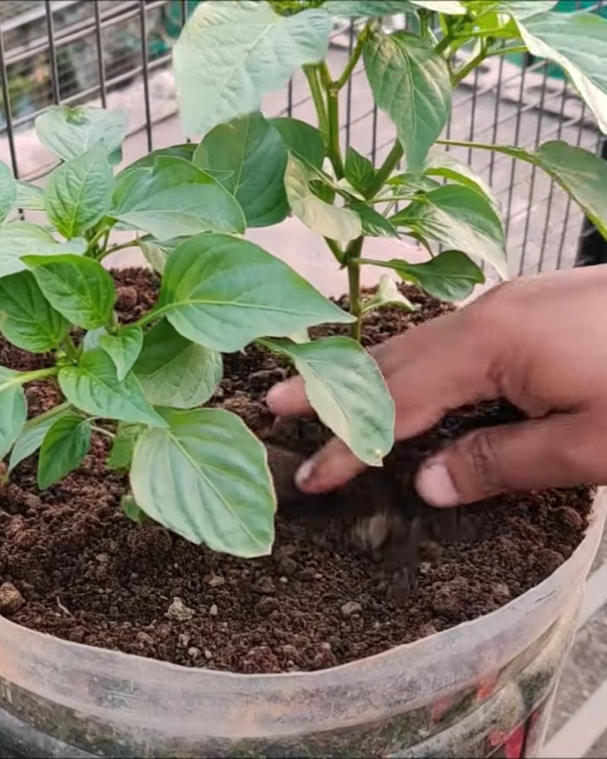 I always make 3 to 4 drainage holes in each container. This keeps the soil from becoming soggy and prevents root rot — a major capsicum killer!