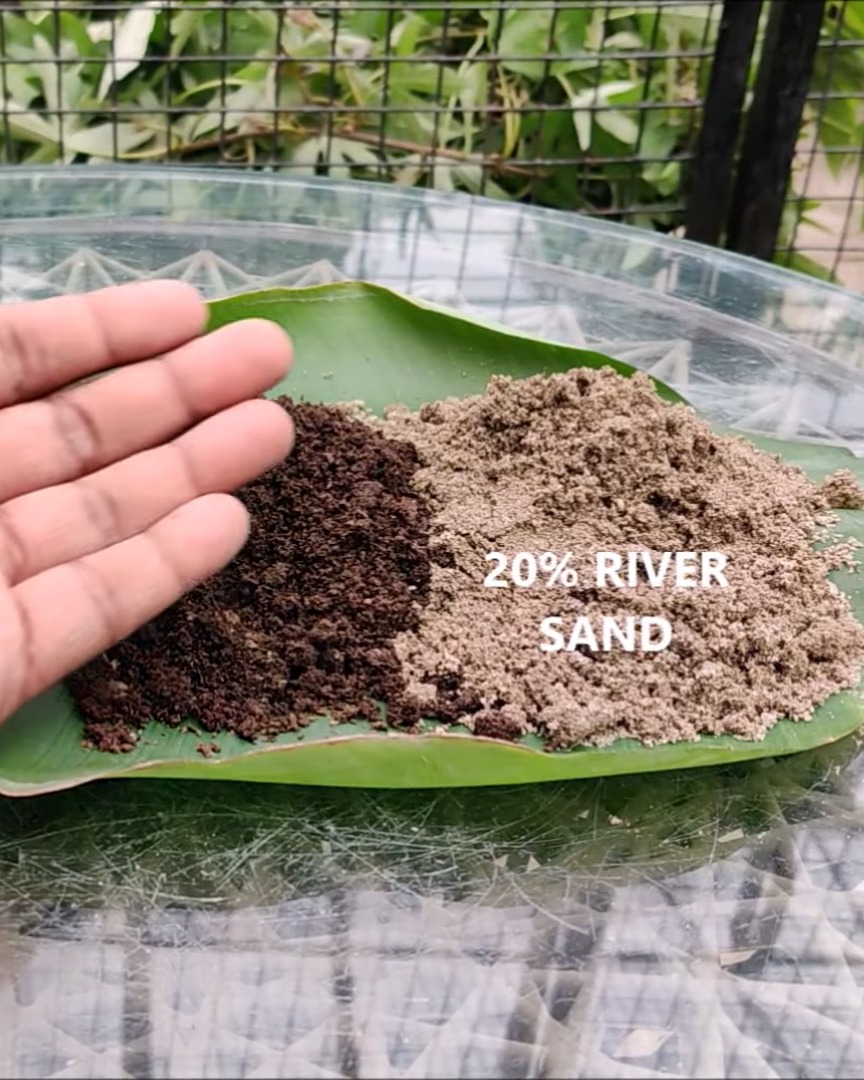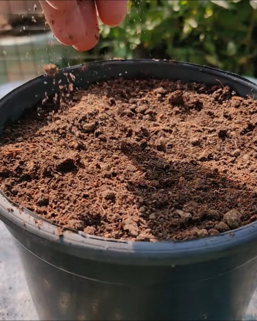 I mix it well until it’s fluffy and uniform. This gives me a light, breathable base for the seeds.