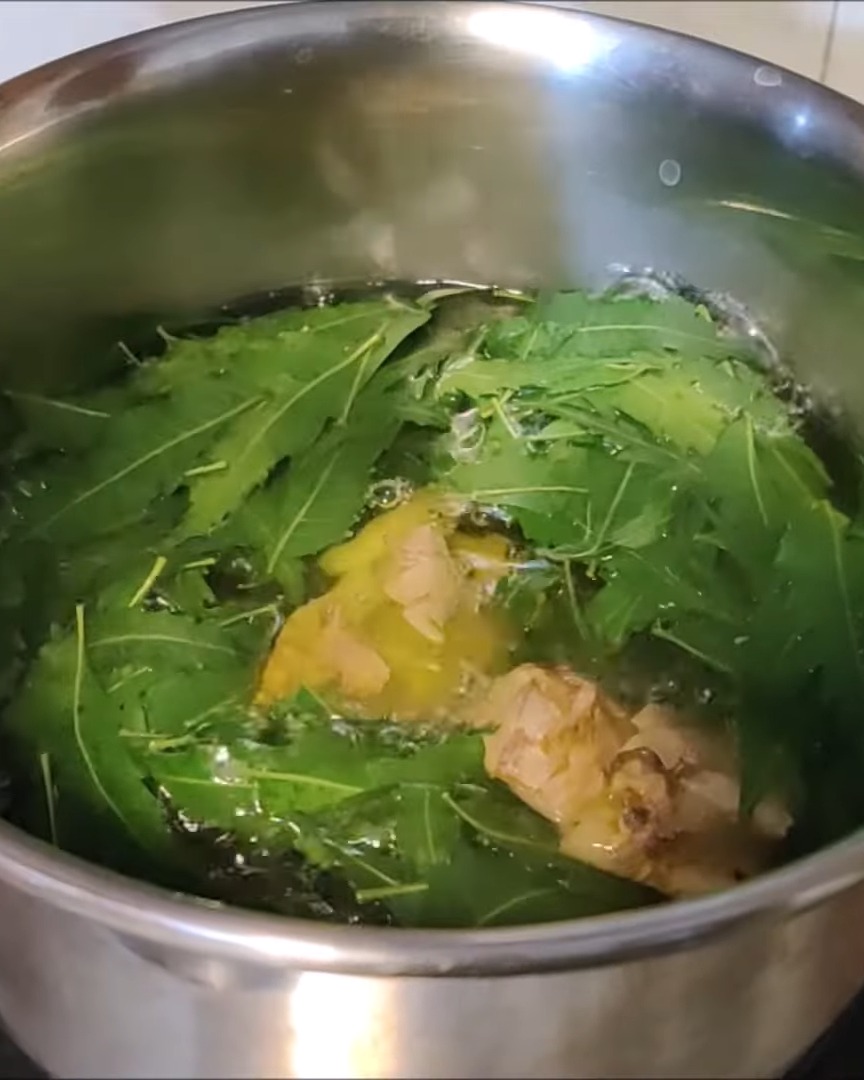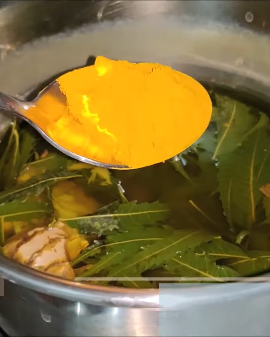 - Boil neem leaves and ginger in 1 liter of water for 12–15 minutes
