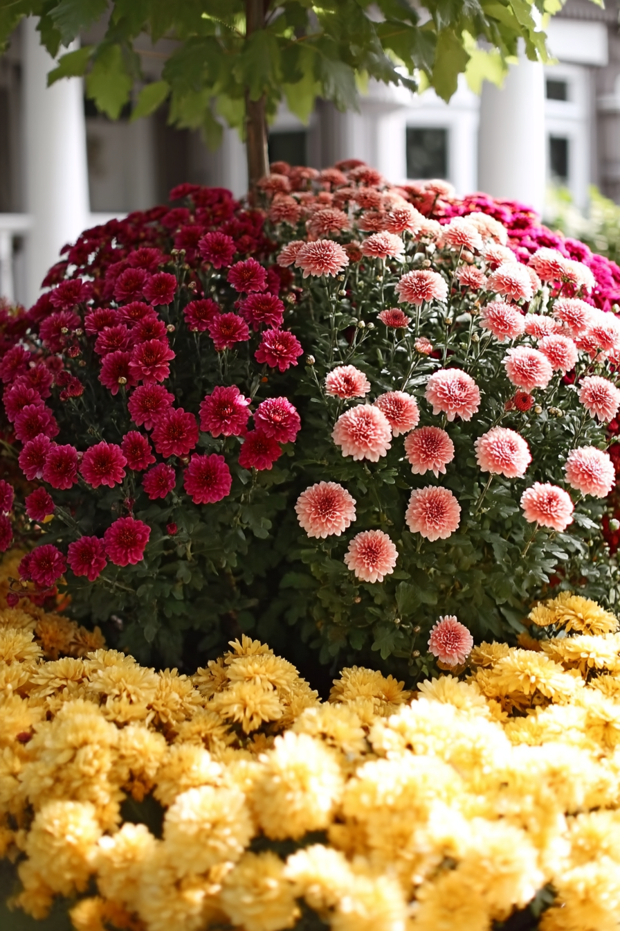 Chrysanthemums bring instant color to any fall flower bed. Their deep reds, golden tones, and soft whites glow in the crisp autumn light.