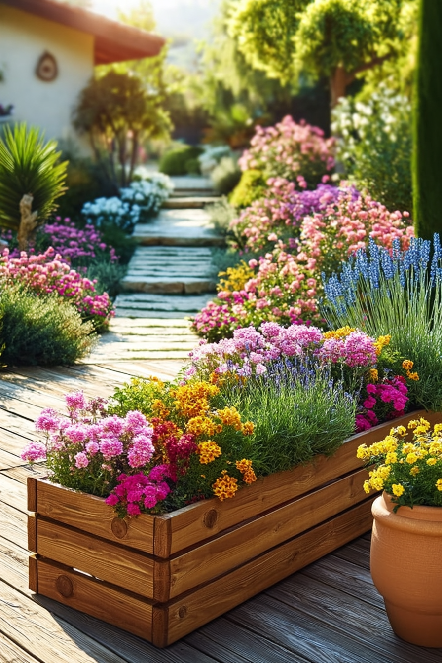 Add plants that bloom in waves for a soft, flowing effect. Tuck grasses or herbs between blooms to bring motion and fragrance.