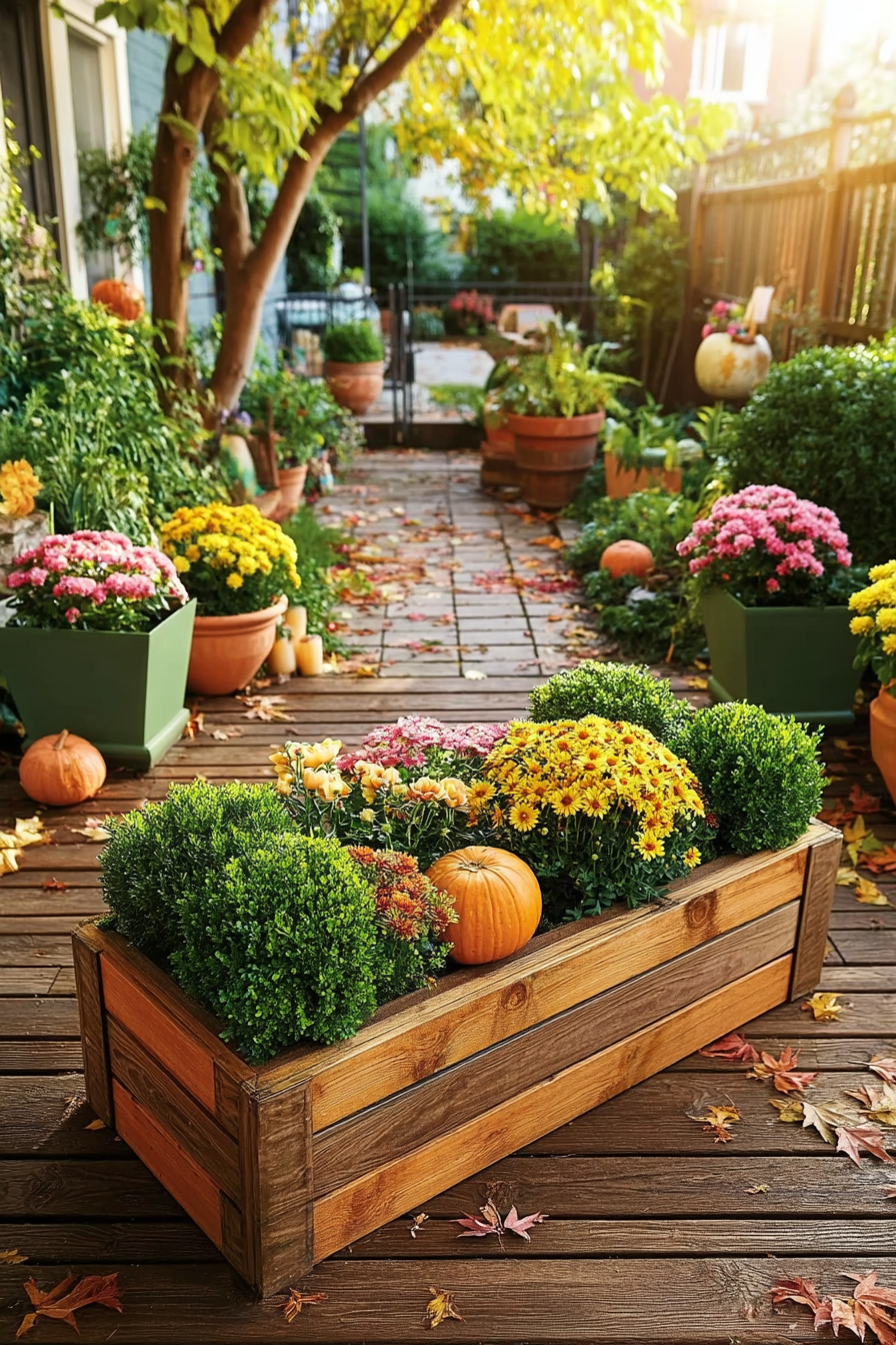Nothing says cozy like wooden planters brimming with fall color. Their natural grain and aged finish add warmth to any garden corner.