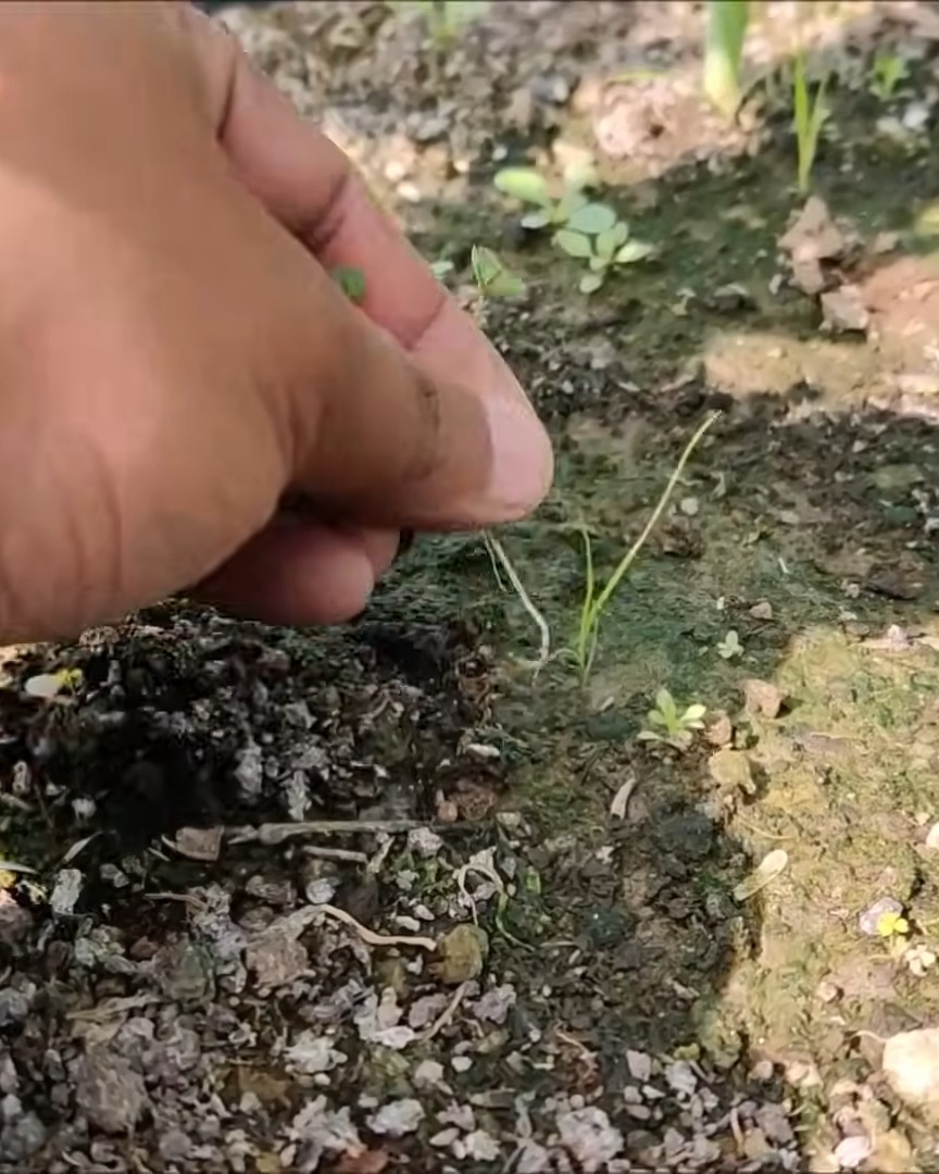 I use a small stick or tool to gently lift them from the soil, trying my best not to hurt the roots.