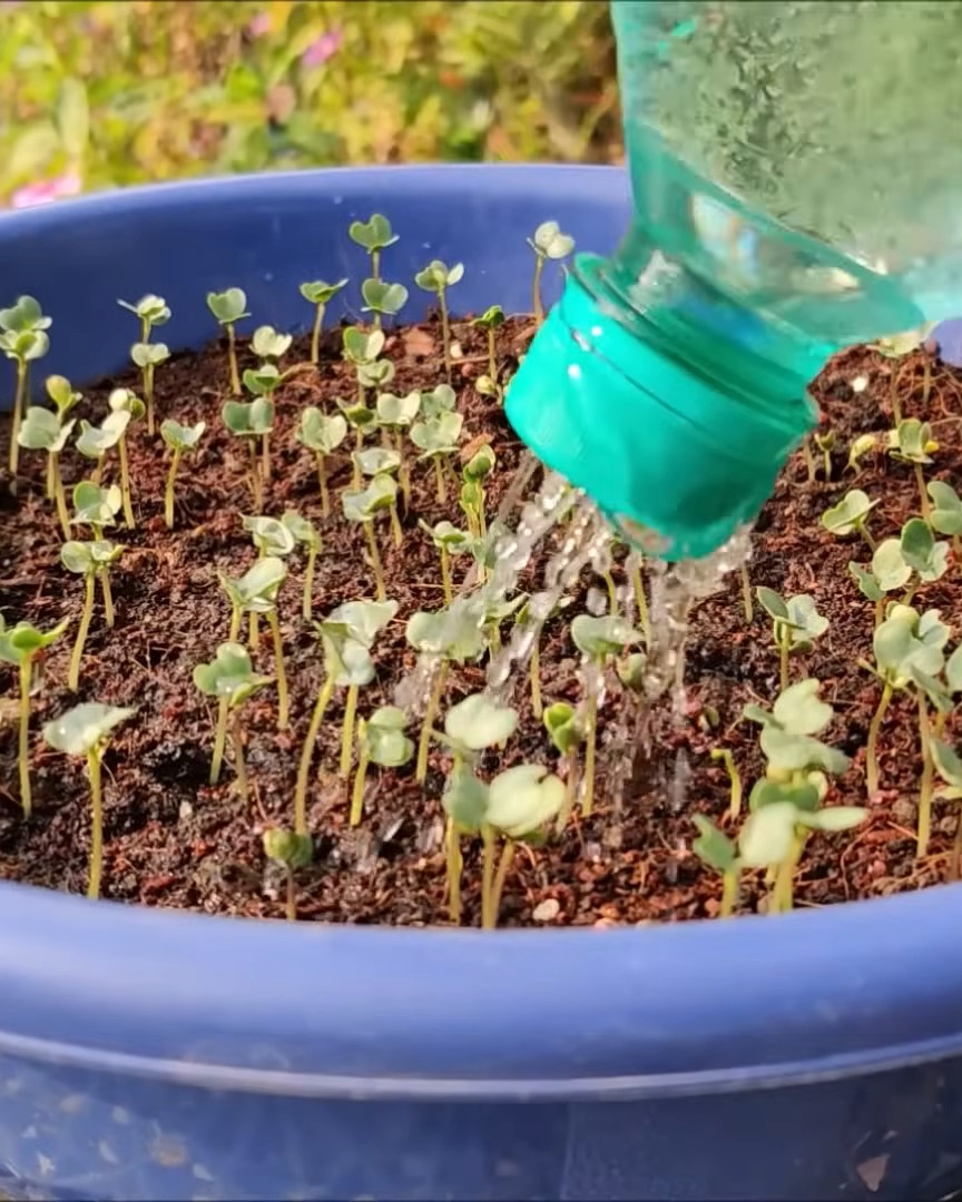 After planting, use a mister or a small watering bottle to water the soil gently.