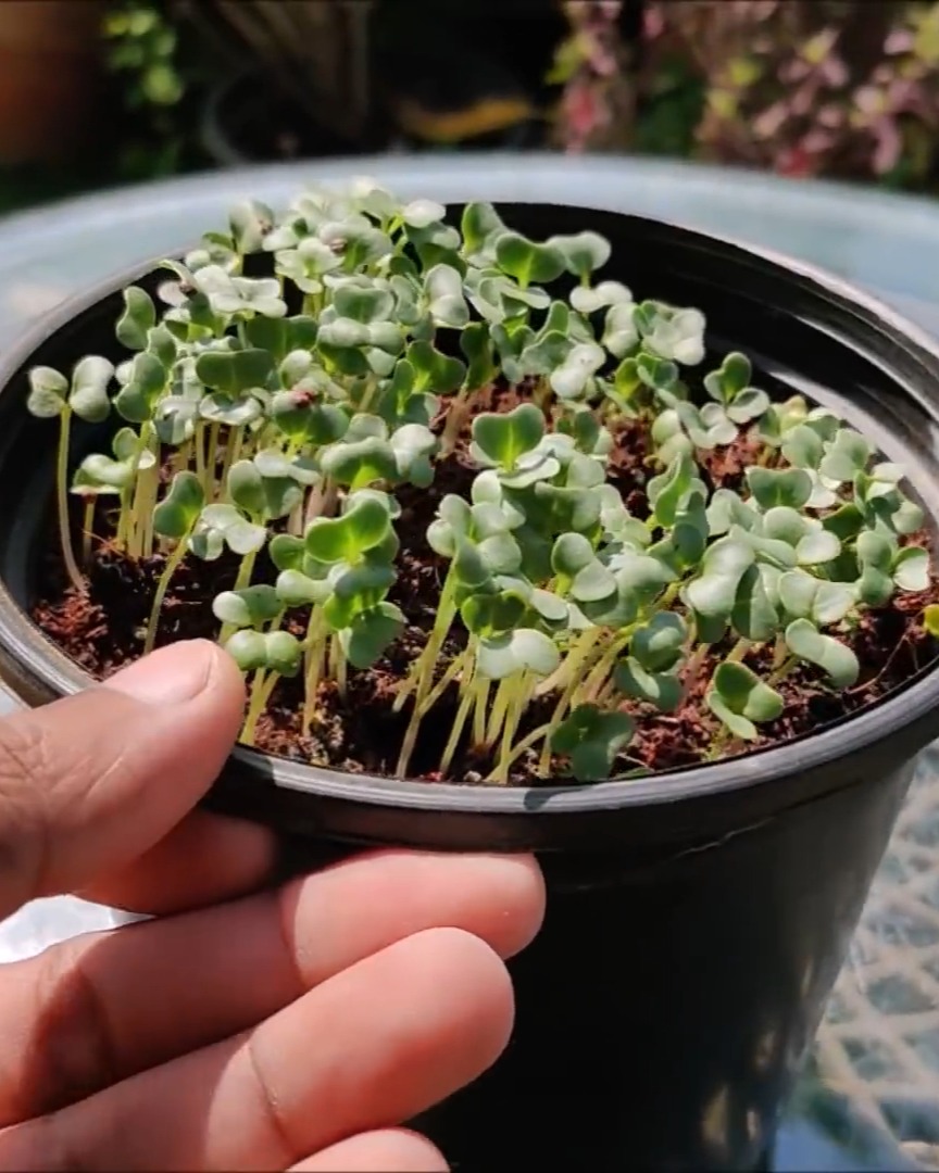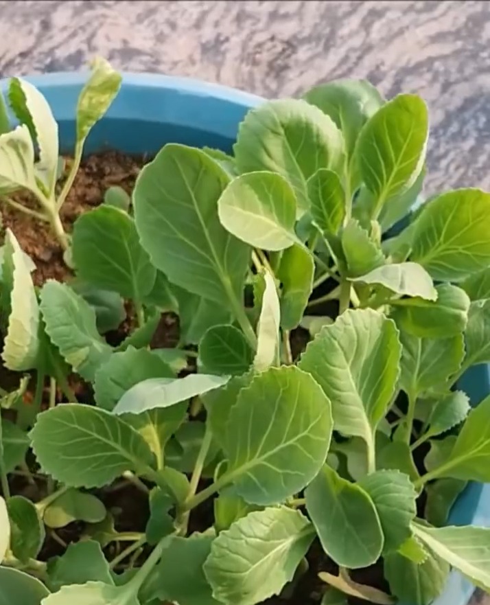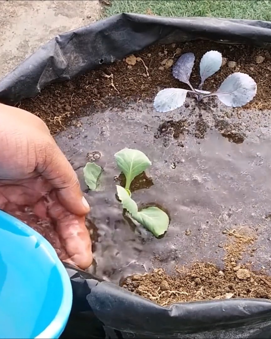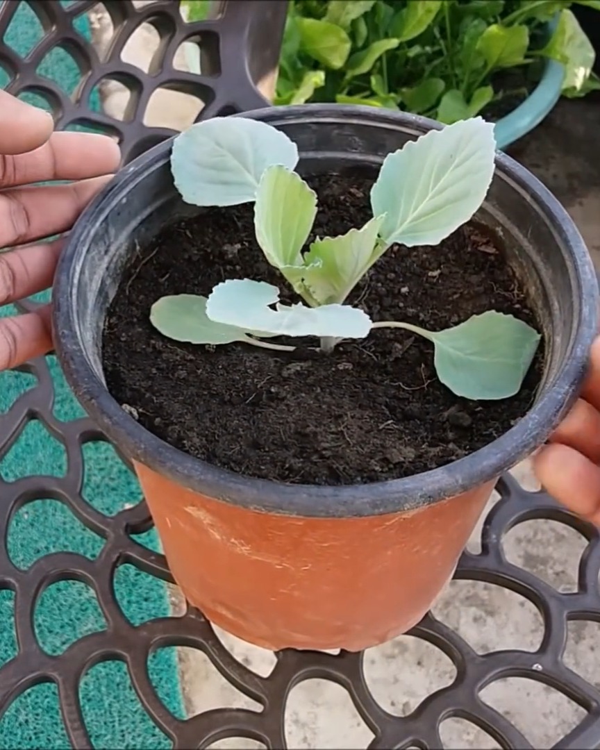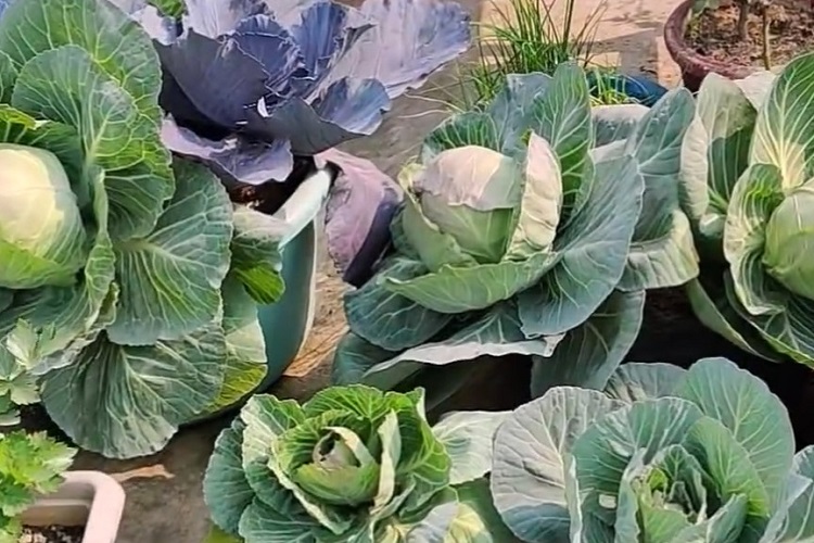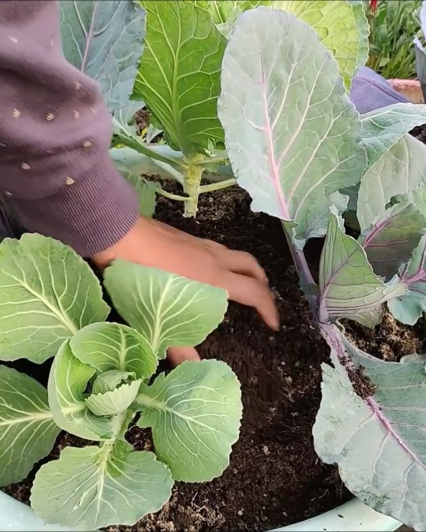 Cabbage has a large root system, so it needs space. I use wide and deep containers—at least 8 to 12 inches.