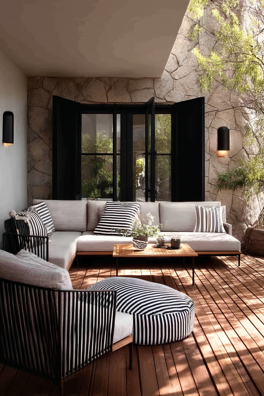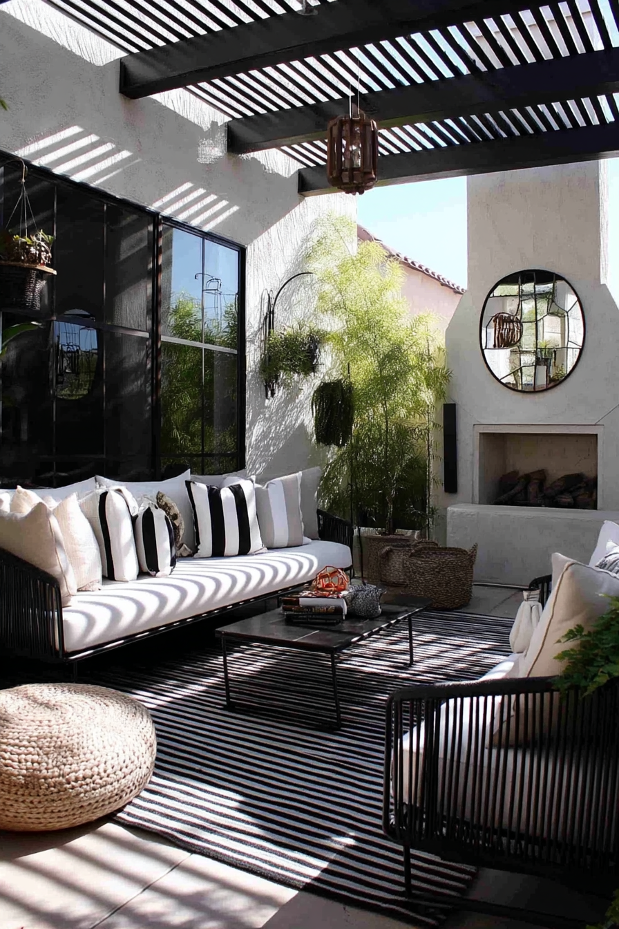 Textiles: Layer pillows, throws, and outdoor curtains for softness and color.