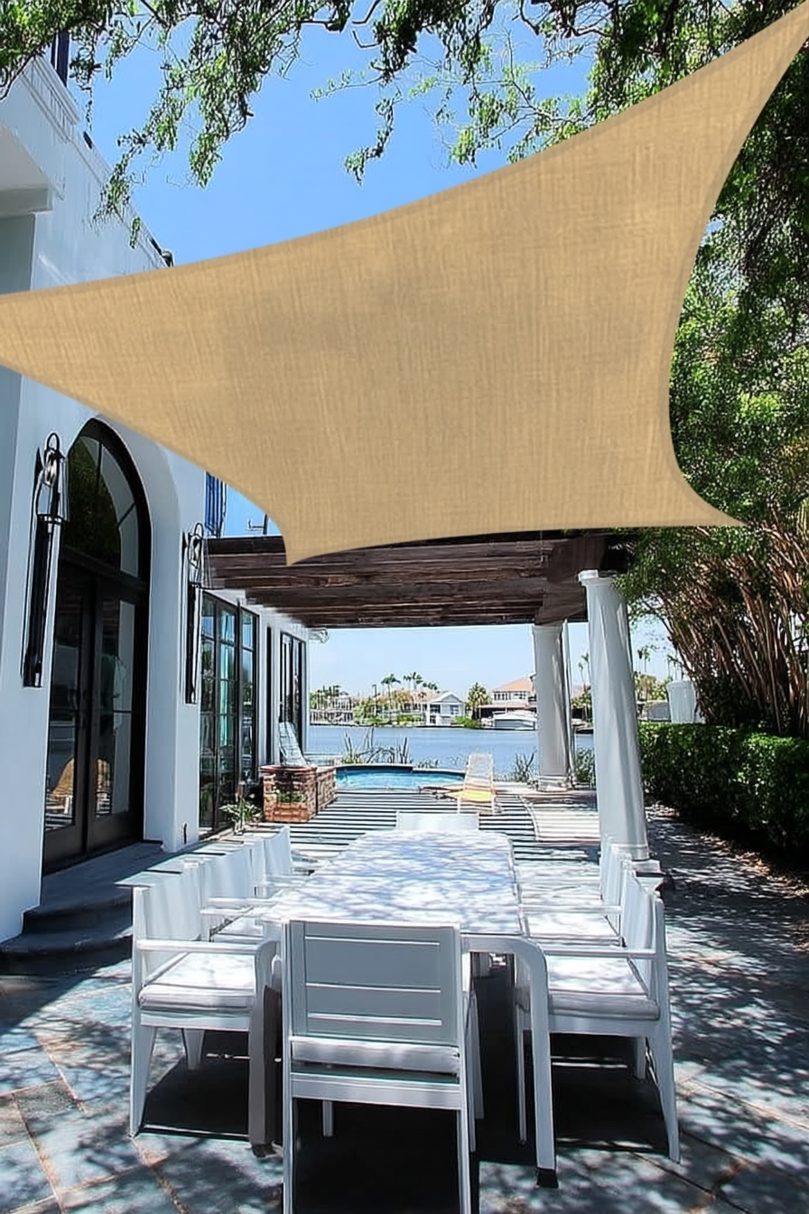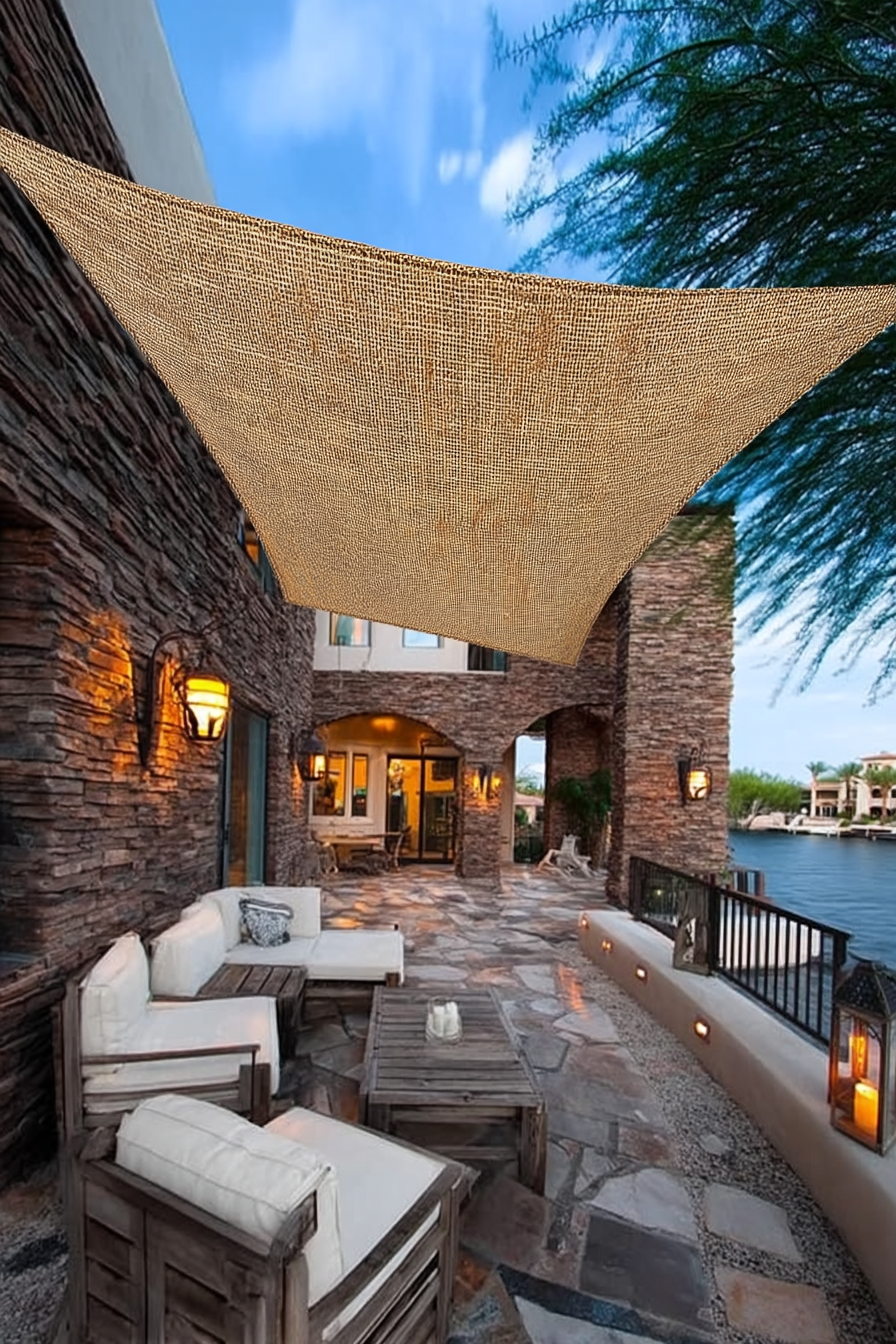 Shade Sails: Tensioned fabric in dynamic shapes — modern, sleek, and easy to DIY.