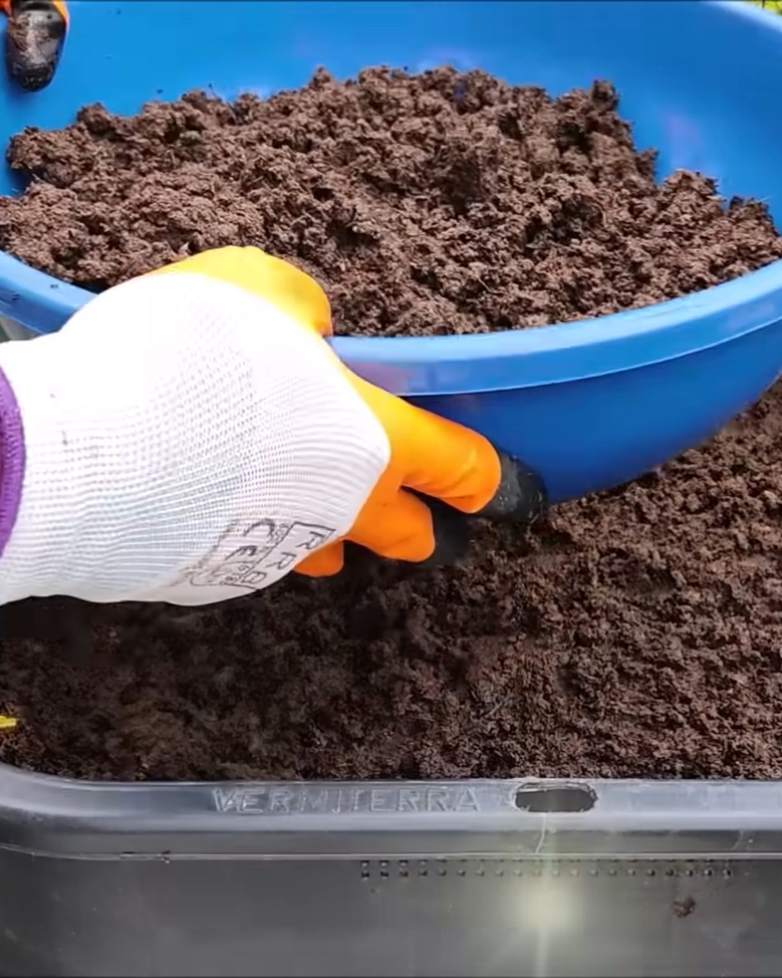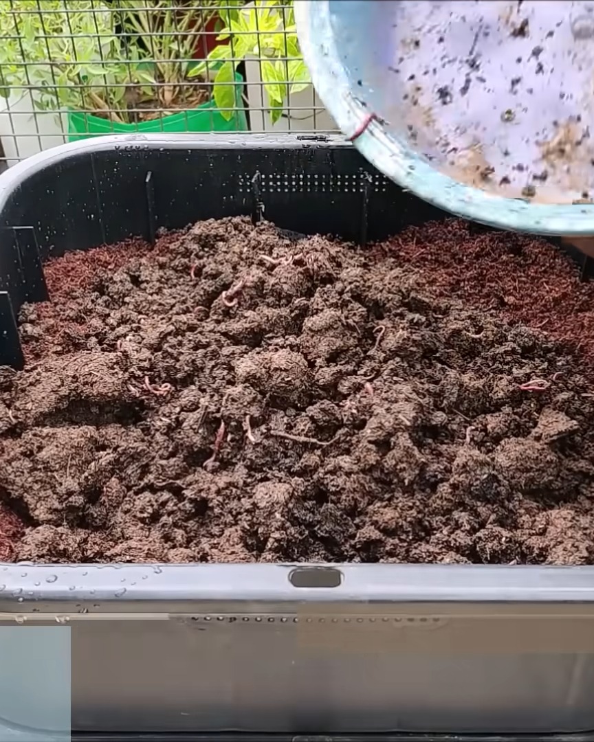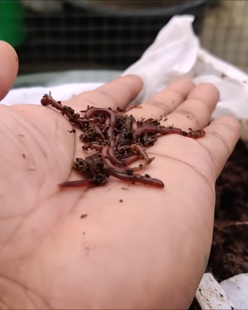I gently place the earthworms into the tray. Then, I leave them undisturbed for about 2 to 3 days. This helps them settle into their new environment.