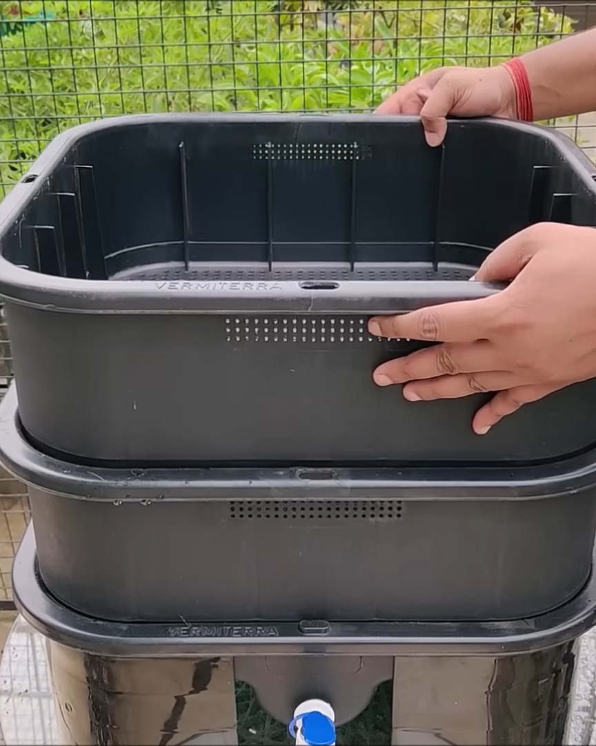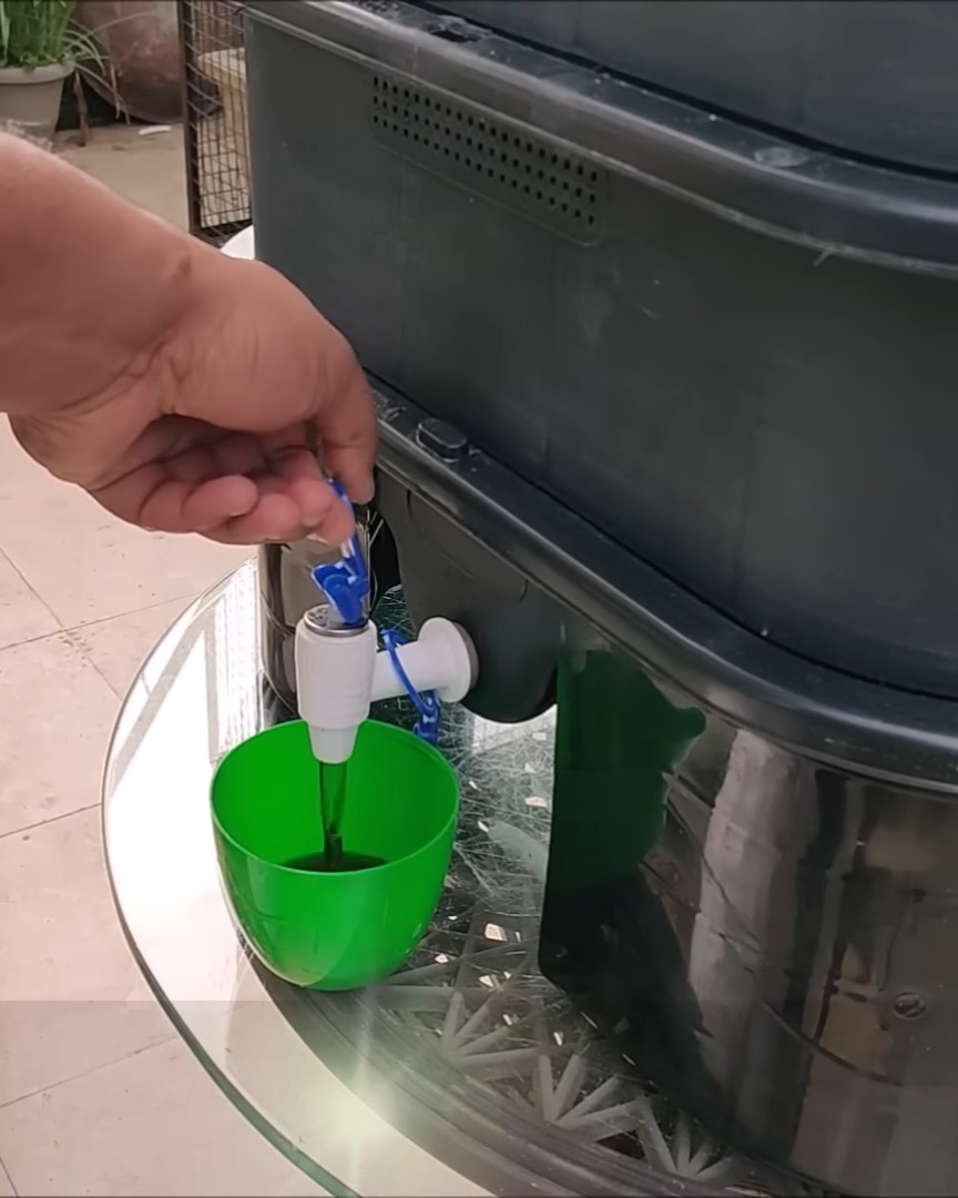Once the composting starts working, I also get liquid gold—vermi wash!