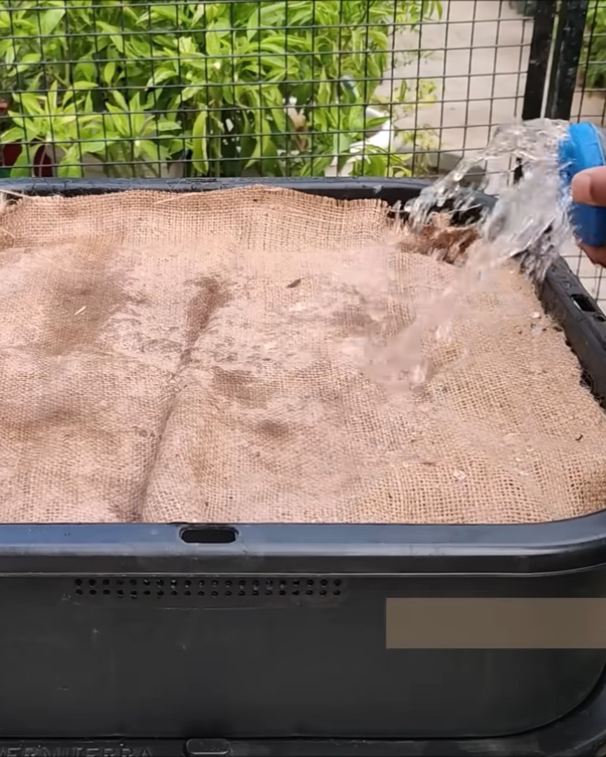 I always keep the worm blanket moist. This helps hold moisture, trap any smell, and keep pests away. After adding food, I pour a little water over the blanket.