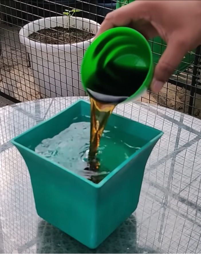 This tea carries nutrients that seep down from the compost. I mix 200 ml of compost tea with 1 liter of water and use it as a natural fertilizer.