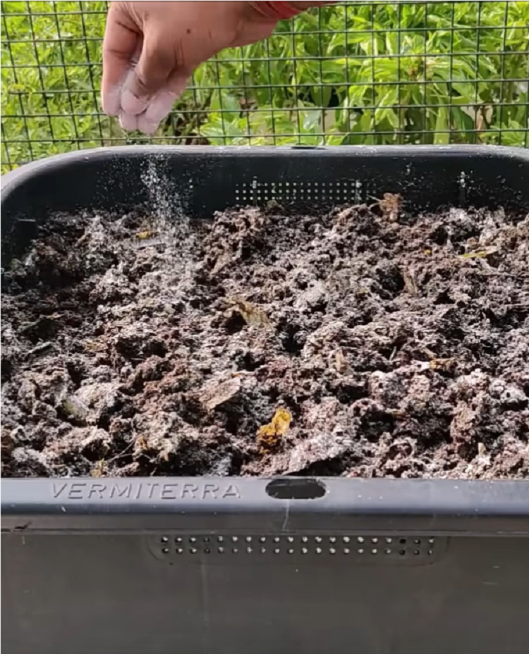 If I notice the bin feels too acidic or see food left uneaten, I sprinkle 1–2 tablespoons of conditioner and mix it well.