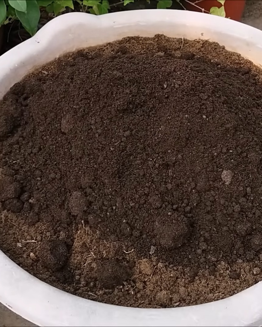 Then I prepare a nutrient-rich mix by adding 30 to 40% compost to the soil.