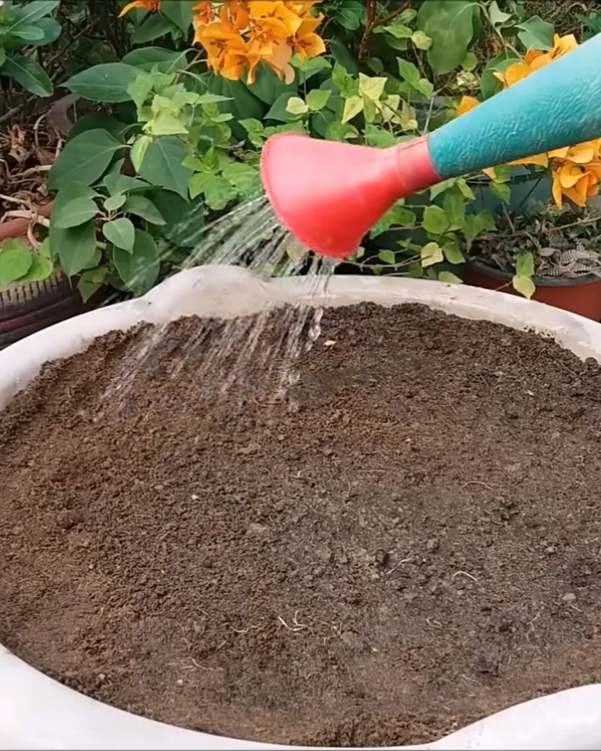 Right after that, I water the soil thoroughly to help the nutrients settle in.