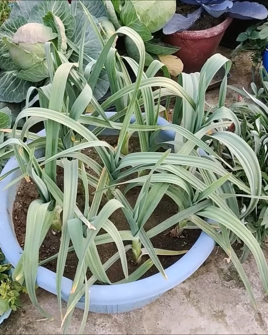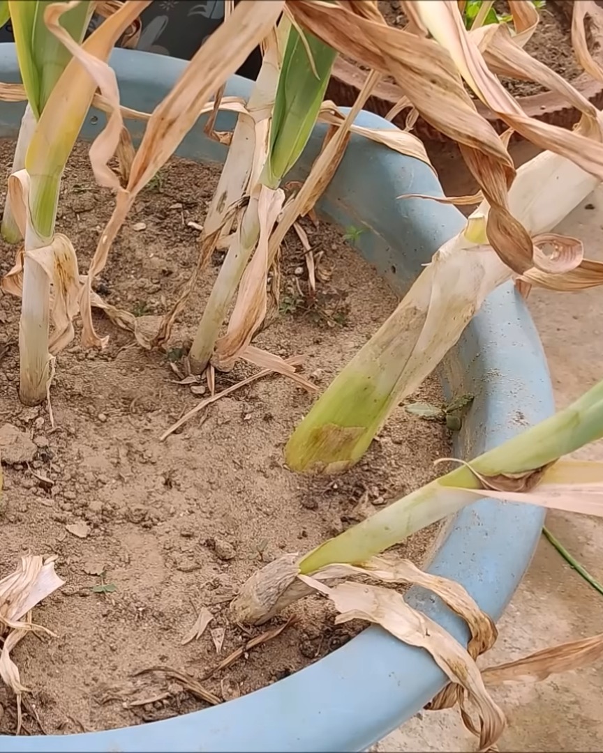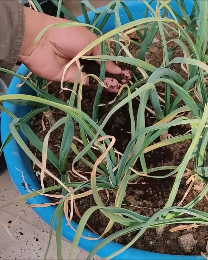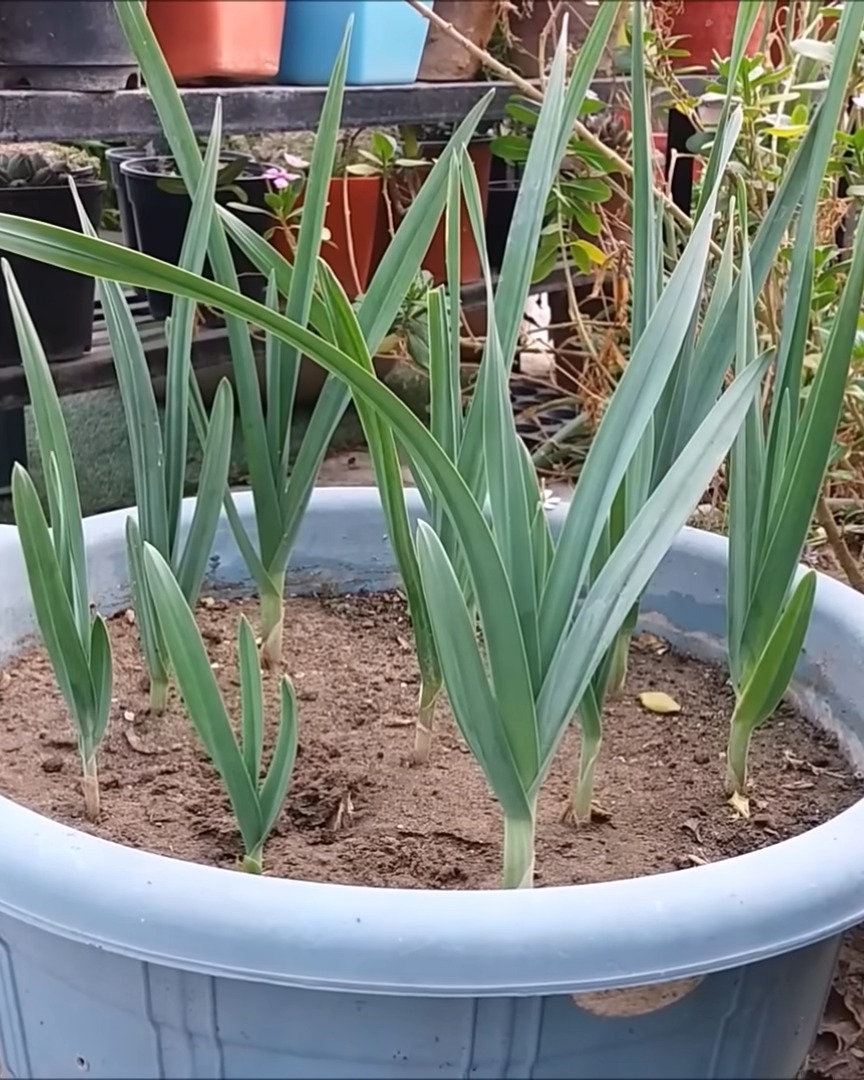 Make sure your pot has holes at the bottom. Garlic doesn’t like sitting in soggy soil—it might rot.