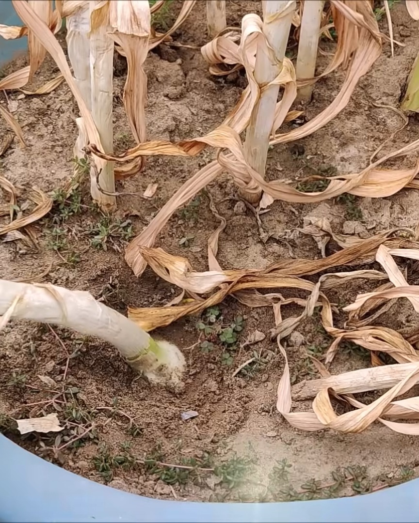 Every 20 to 25 days, I loosen the topsoil. This makes it easier for the garlic bulbs to grow and expand.