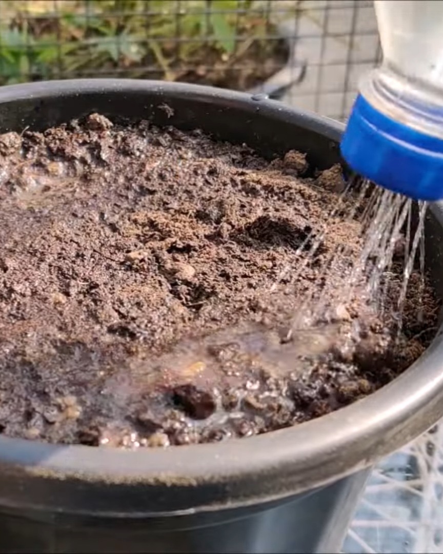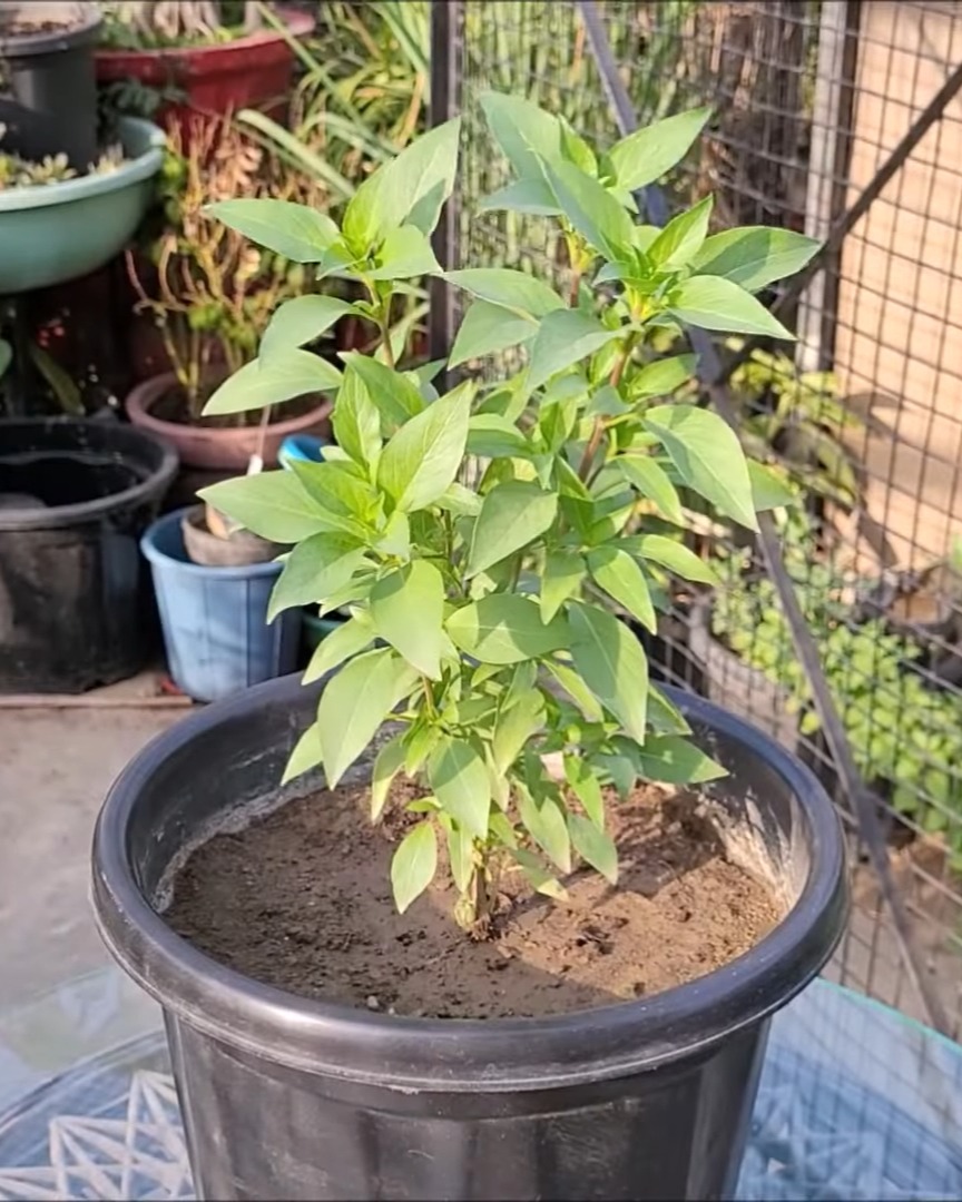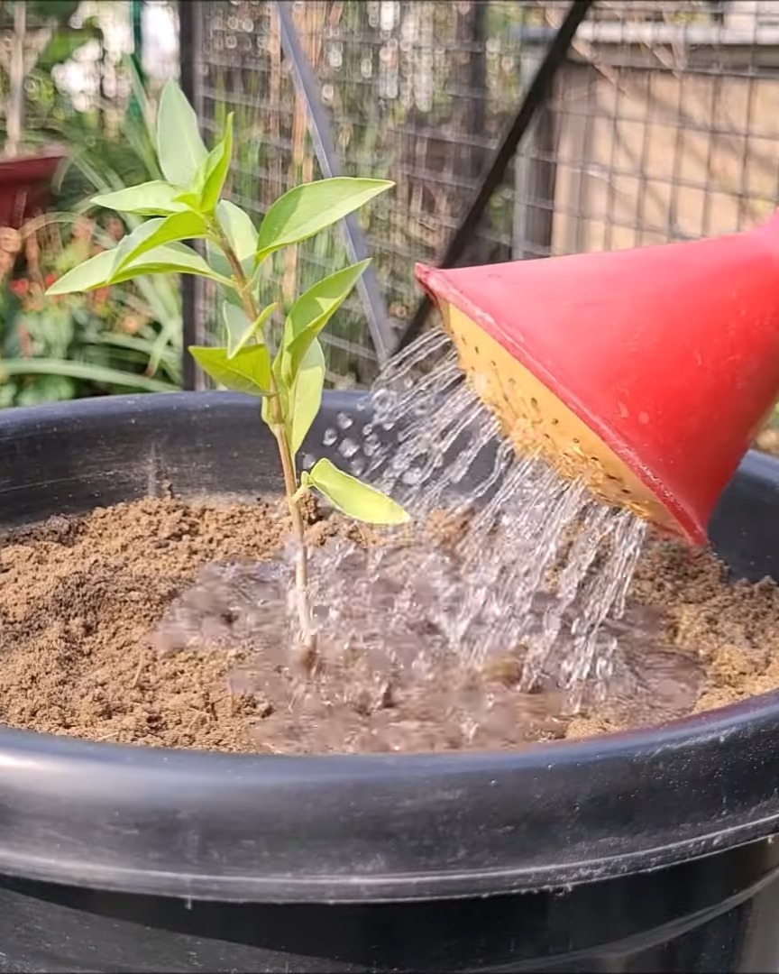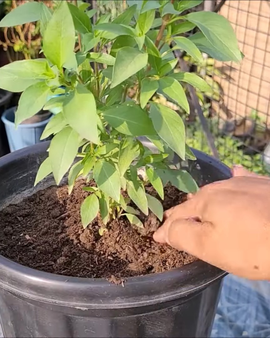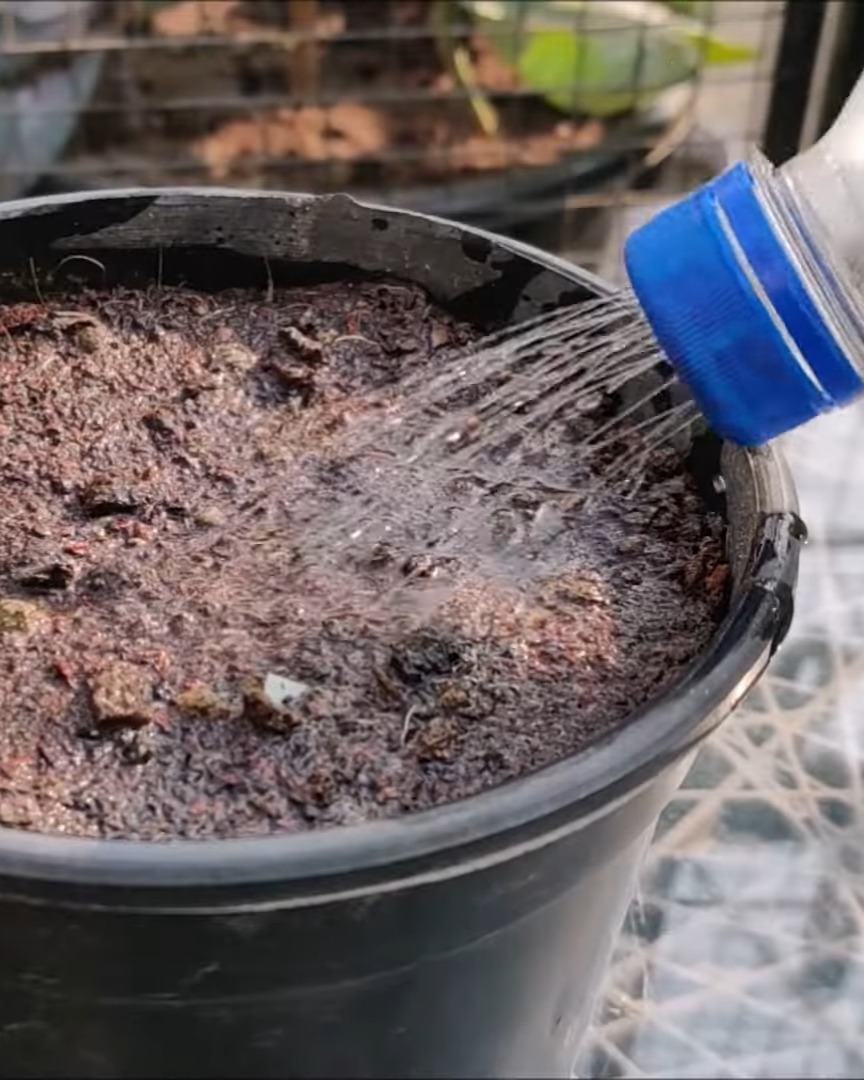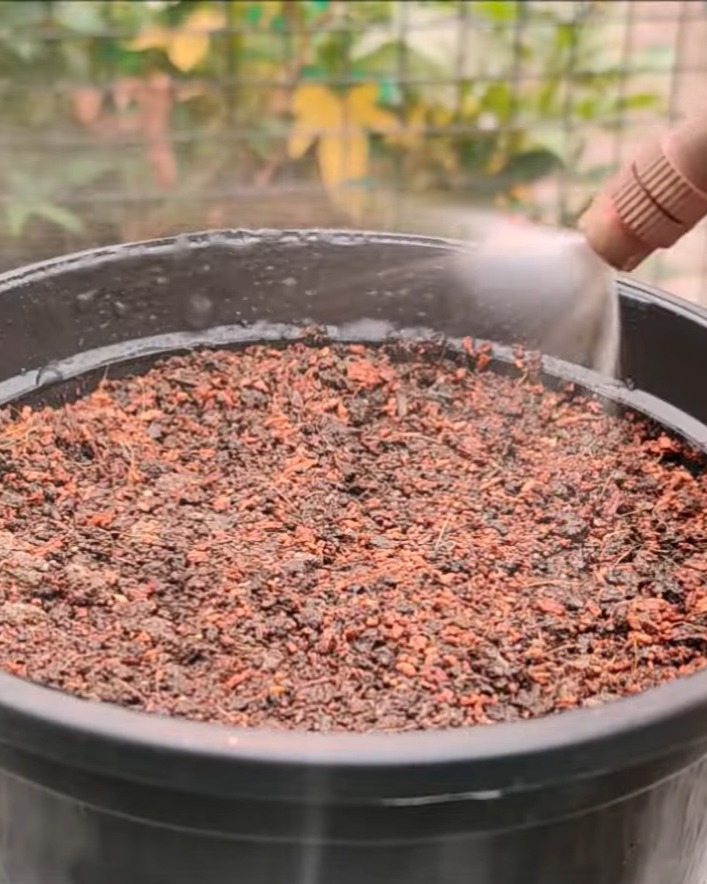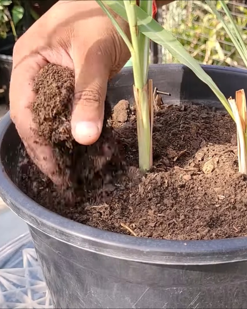 This plant drinks a lot of water, so I make sure the soil never dries out. Once it’s established, I feed it cattle manure or vermicompost every 18–20 days.