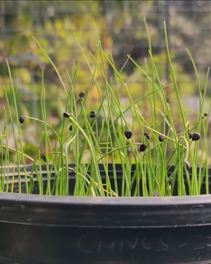 Watering is key here—I use a soft spray so the seeds don’t move. Chives sprout in 7–8 days.