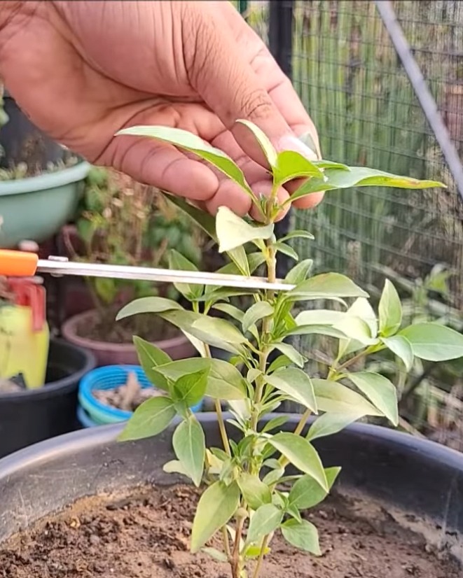 I choose 6–8 fresh stems (5–7 inches long) that are green and healthy. I remove the bottom leaves and expose 2–3 nodes.