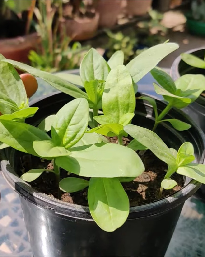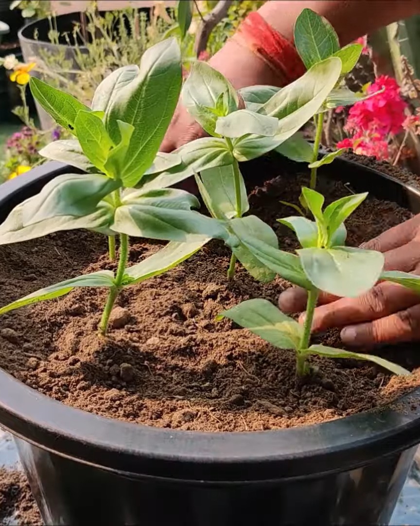 Zinnia varieties vary greatly, so I adjust pot size and spacing accordingly. For the Zahara variety, I plant two seedlings in a 12-inch pot.