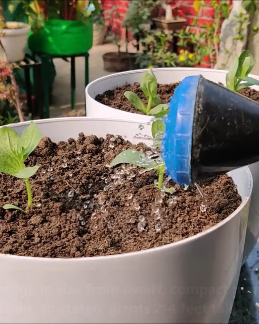 I water gently using a watering can. The soft spray prevents soil from splashing out and doesn’t disturb the roots.