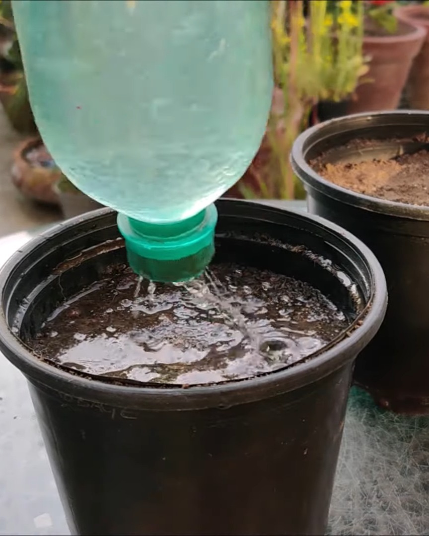 I also water well to activate the fertilizer. This step really helps the flowers grow bigger and better!